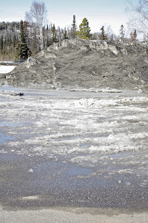 A local parking lot is a perfect springtime paradigm of ice and melting mounds of snow.